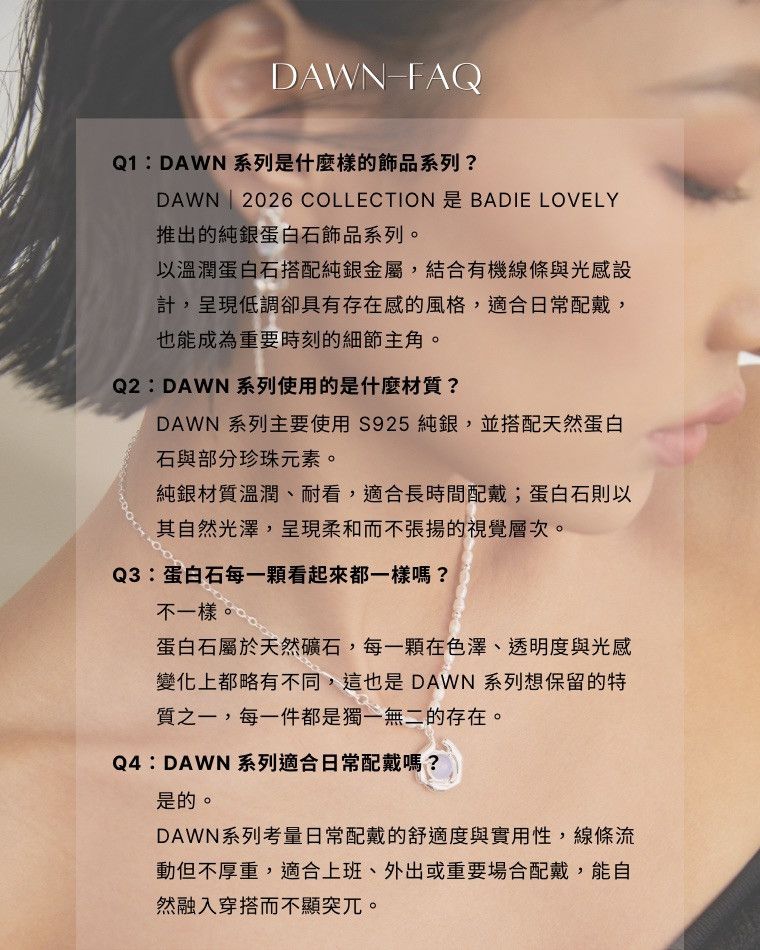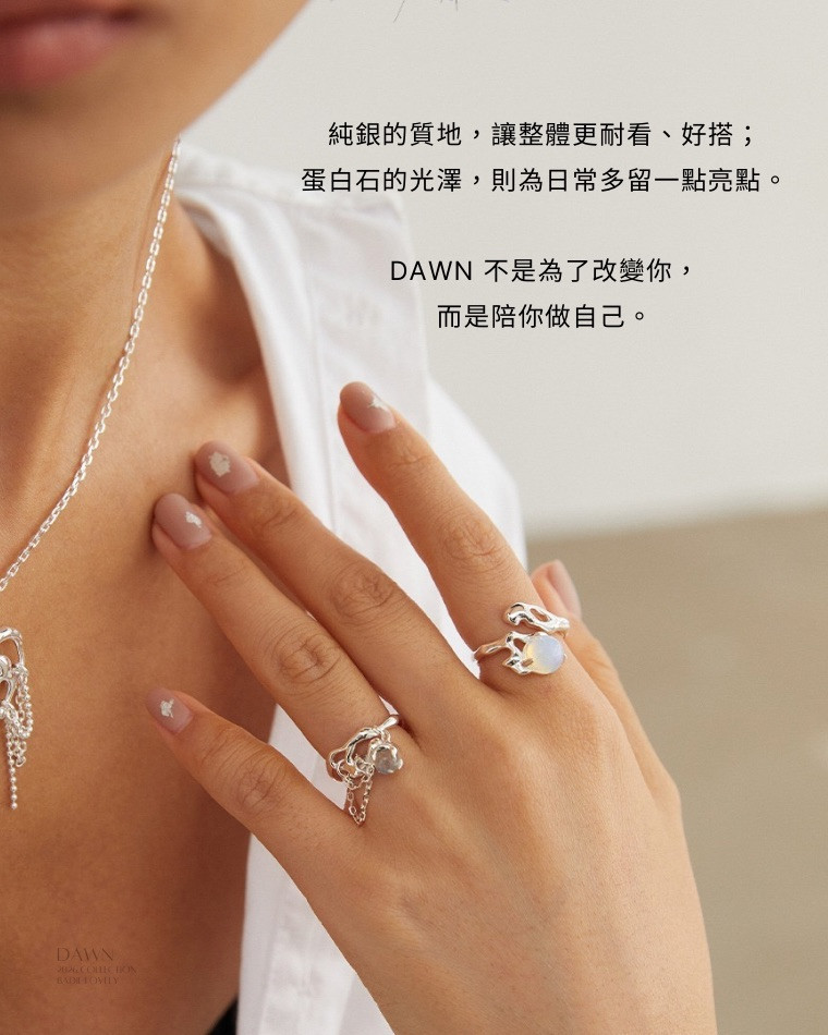 Dawn 純銀蛋白石飾品, 純銀蛋白石項鍊, 純銀蛋白石手鍊, 純銀蛋白石戒指, 純銀蛋白石耳環, 蛋白石飾品, 蛋白石項鍊, 蛋白石手鍊, 蛋白石戒指, 純銀飾品, S925 純銀飾品, 光感設計飾品, 有機線條飾品, 設計師飾品品牌, Badie Lovely 飾品, 2026 飾品新系列, 日常可佩戴純銀飾品, 設計感純銀蛋白石飾品, 不被定義的飾品, 高質感純銀飾品, Sterling Silver Opal Jewelry, Dawn Opal Jewelry Collection, Desig